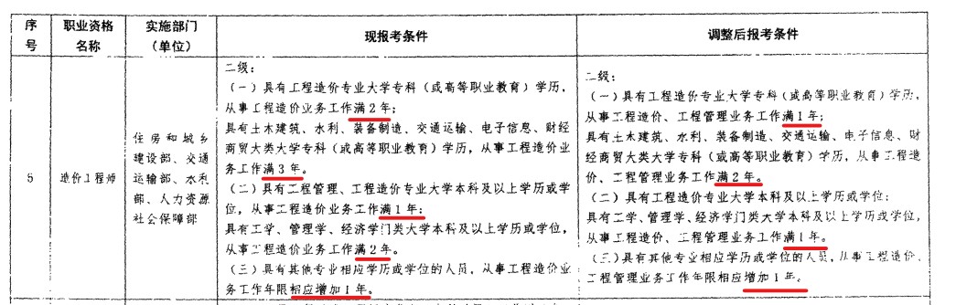 内蒙古人社厅转发关于降低二级造价工程师考试工作年限要求有关事项通知