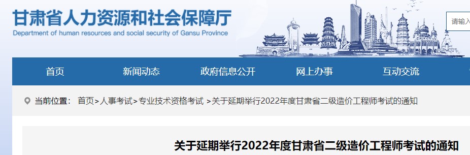 关于延期举行2022年度甘肃省二级造价工程师考试的通知