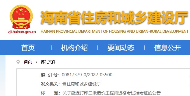 海南省关于延迟打印二级造价工程师资格考试准考证的公告 9月21日起