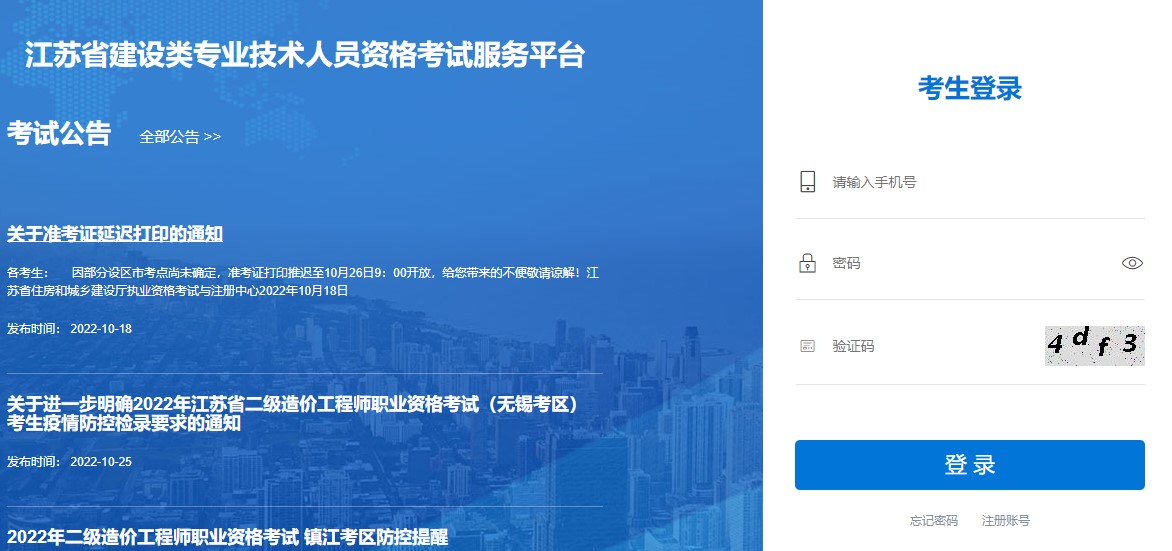 准考证打印入口:江苏省建设类专业技术人员资格考试服务平台