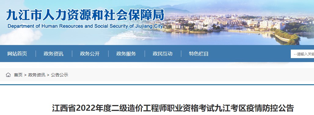 江西省2022年度二级造价工程师职业资格考试九江考区疫情防控公告