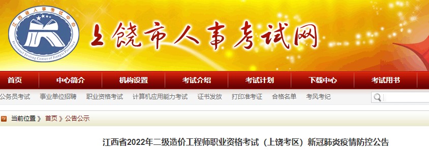 江西省2022年二级造价工程师职业资格考试(上饶考区)新冠肺炎疫情防控公告