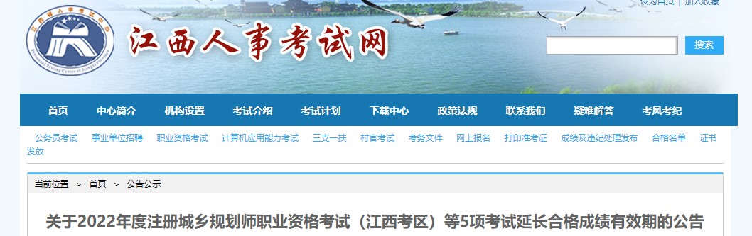 关于2022年度注册城乡规划师职业资格考试(江西考区)等5项考试延长合格成绩有效期的公告