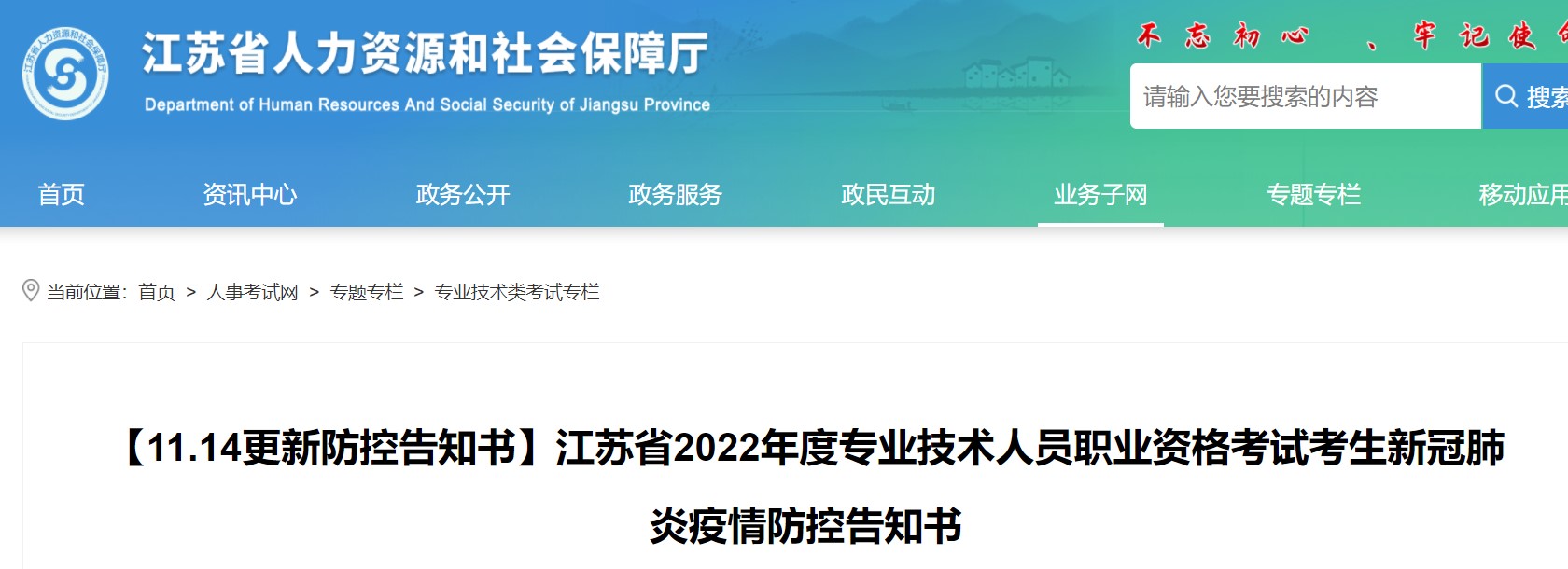 【11.14更新防控告知书】江苏省2022年度专业技术人员职业资格考试考生新冠肺炎疫情防控告知书