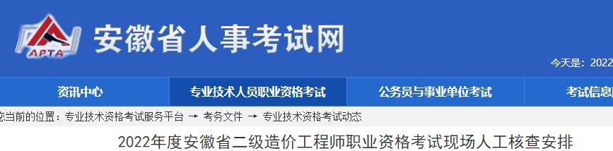 2022年度安徽省二级造价工程师职业资格考试现场人工核查安排