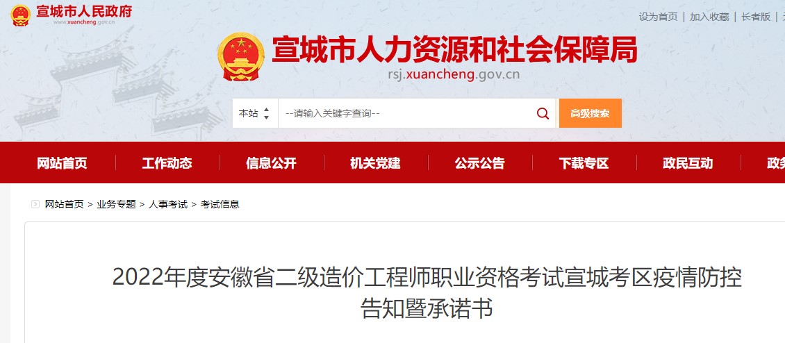 2022年度安徽省二级造价工程师职业资格考试(宣城考区)将于2022年12月17日举行,为保障广大考生身体健康,现将此次考试我市防疫有关注意事项告知如下: