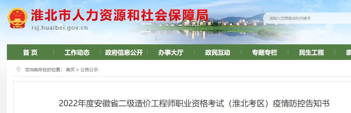 2022年度安徽淮北考区二级造价工程师职业资格考试疫情防控告知书