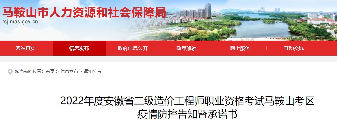 2022年度安徽省二级造价工程师职业资格考试马鞍山考区将于12月17日在马鞍山市进行。为切实保障广大考生的生命安全和身体健康,确保本次考试安全有序进行,现就有关事项告知如下。