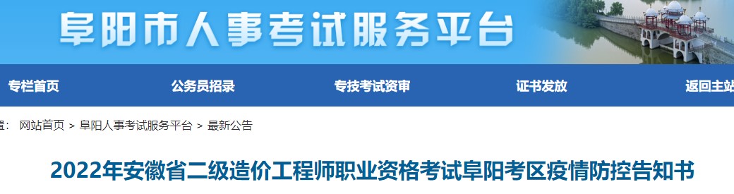 2022年安徽省二级造价工程师职业资格考试阜阳考区疫情防控告知书