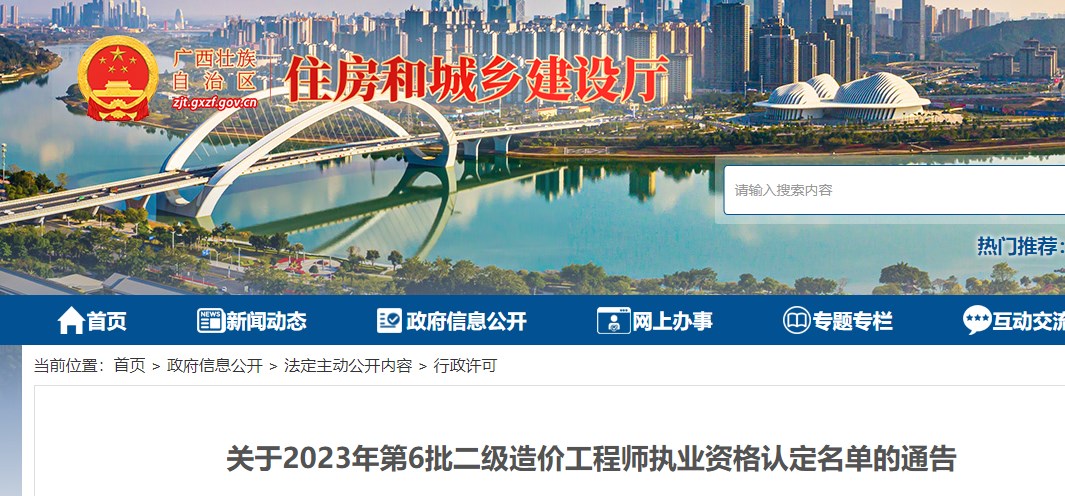 广西住建厅关于第6批二级造价工程师执业资格认定名单的通告