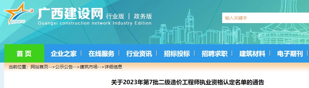广西省发布2023年第七批二级造价师执业资格认定名单,通告如下。