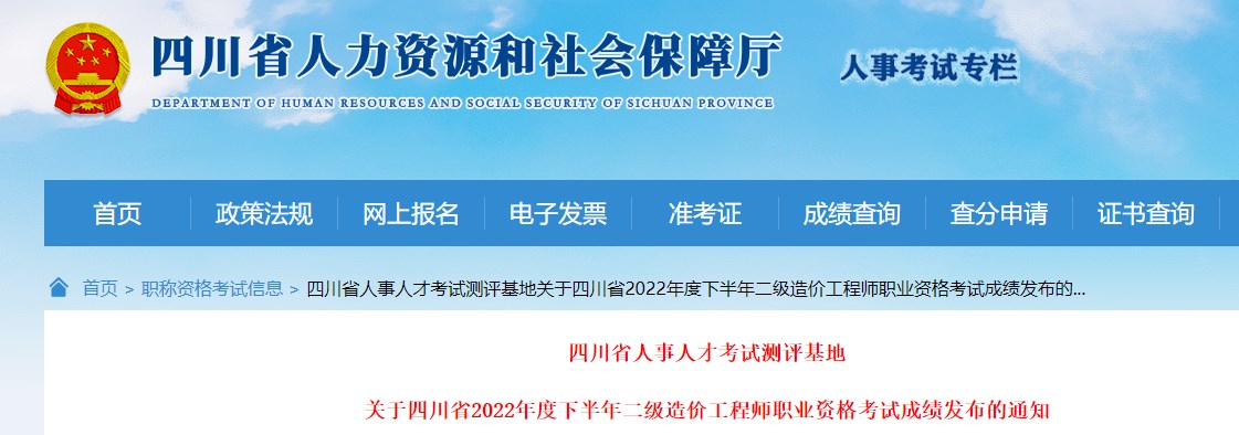 四川省2022年度下半年二级造价师考试成绩发布的通知