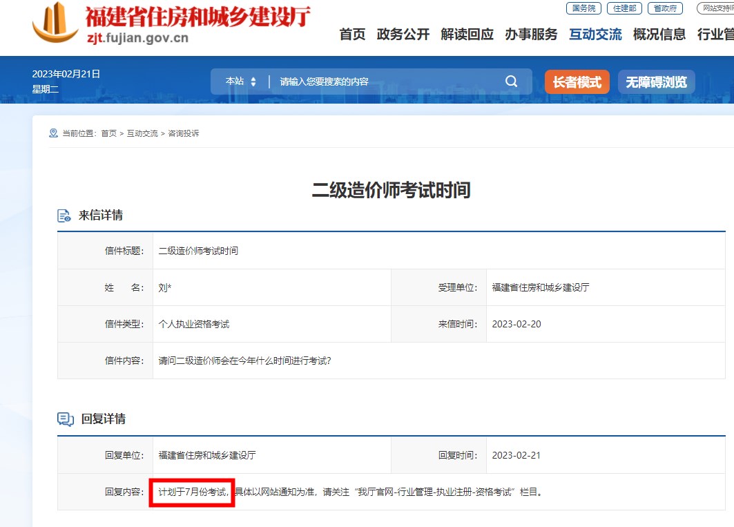 福建省刚公布了22年考试成绩,那今年还会举行二级造价师考试吗?近日,有考生就二造考试时间的问题咨询了福建省住建厅,得到回复说预计7月举行,来看具体问答~