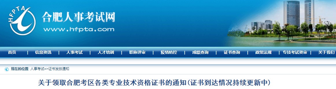 关于领取合肥考区各类专业技术资格证书的通知(证书到达情况持续更新中)