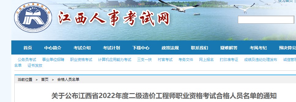 关于公布江西省2022年度二级造价工程师职业资格考试合格人员名单的通知