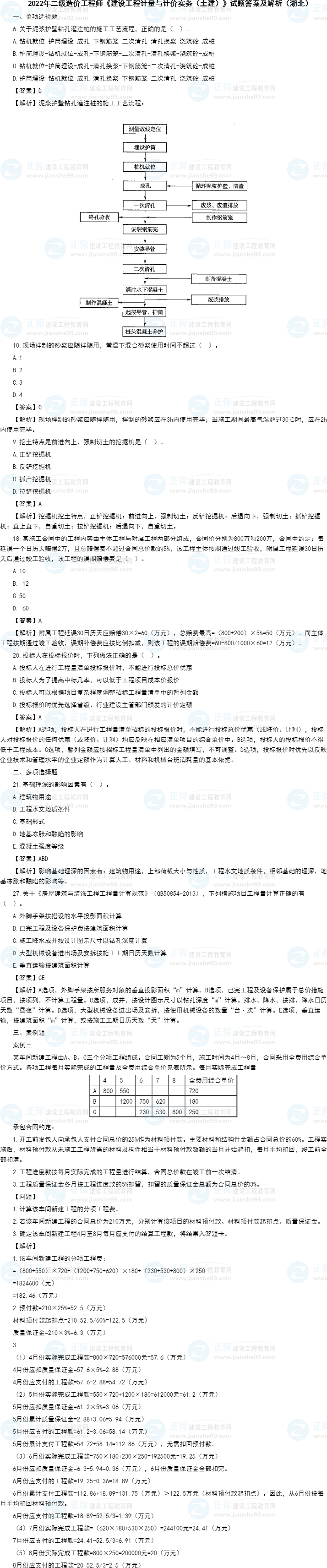 湖北2022年二级造价工程师《计量与计价实务(土建)》试题答案及解析
