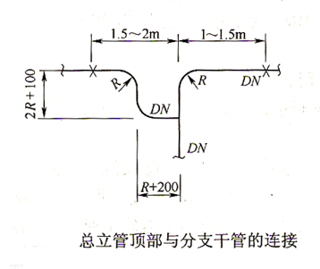立管顶部如分为两个水平支管时,应采用羊角弯连接。