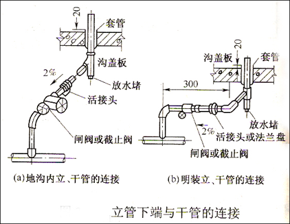 3.管道穿越基础、楼板和墙壁应预留孔洞,安装时加套管。安装套管方法同热水供应系统。