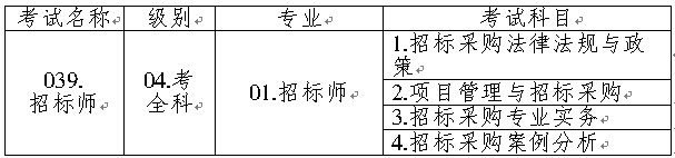 四、招标师职业水平考试名称、级别、专业和科目代码为: