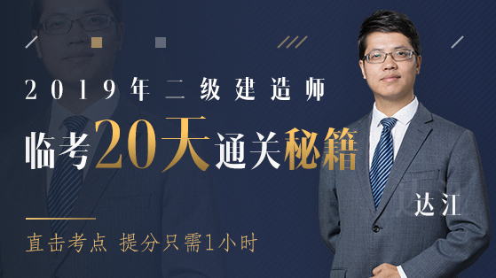 距离2019年二级建造师考试仅剩20天左右,随着时间越来越近,发现很多重要的知识点未记住,心态也越来越焦躁。如何拯救你我的二级建造师考试!同学们,放轻松!建设工程教育网临考20天直达秘籍直播,达江老师带领考生们1小时直击考点,1小时梳理重难点,1小时掌握做题技巧,你与直达只差这1小时!