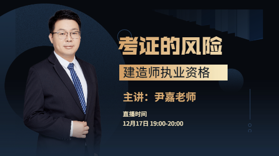 什么是考证的风险?对于这次是不是感到很陌生。12月17日晚19:00,尹嘉老师为同学们揭秘建造师项目管理中的“风险管理”内容,以及结合考证及备考注意事项,这堂直播课不能少,涨知识的机会到了。