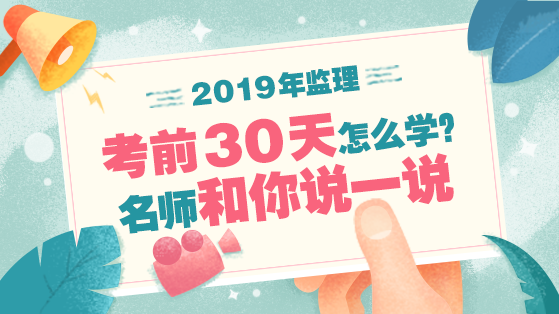 距离2019年监理工程师考试还剩1个月的时间,考生们你们准备好了吗?30天应该怎样学习?30天如何进行合理分配?必做题型及知识点是否都已掌握?想要在30天内突破重重障碍,取得最后胜利,4月18日监理直播不能错过!建设工程教育网老师李娜老师带领考生们360°深度解析30天备考技巧,解决考生们备考中的重重困惑。