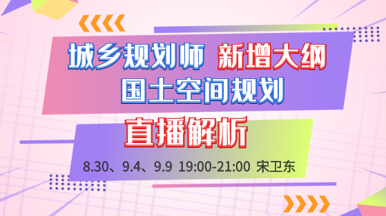 | 2020城乡规划师新增大纲讲解-国土空间规划(二)【仅限购课学员免费】 | 09-04 19:00--21:00 | 宋卫东 | >>购课观看 |