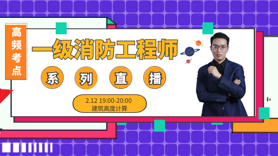 2020年一级消防工程师高频考点系列免费直播课,暂定有3期,2月12日开始每周三晚上19点,由靳啸天老师为大家主讲,全面深入剖析知识点,夯实基础,每天1小时,消防备考不再难。