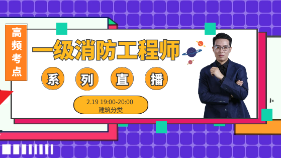 2020年一级消防工程师高频考点系列免费直播课,暂定有3期,2月12日开始每周三晚上19点,由靳啸天老师为大家主讲,全面深入剖析知识点,夯实基础,每天1小时,消防备考不再难。