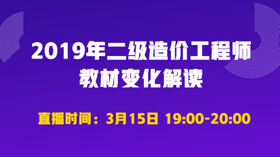 为了更好有针对性的帮助备考2019年二级造价师考试的学员们复习,斩获高分!建设工程教育网的帅哥老师将在3月15日晚上19:00-20:00免费直播一场关于2019年二级造价工程师教材变化的解读课程呦!