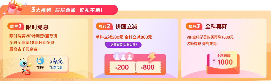 3.VIP特训营/VIP至尊班/评审VIP全科额外立减1000元;