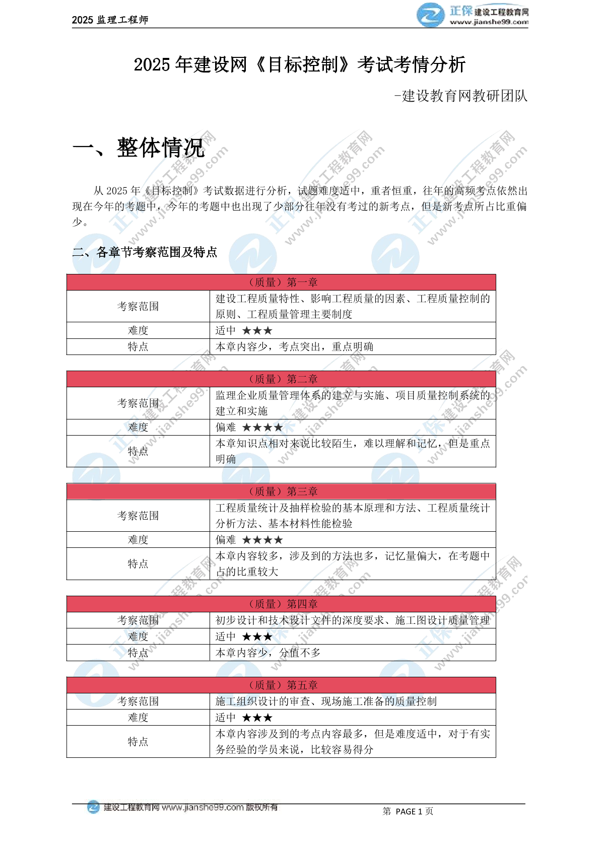 2025年监理工程师《目标控制(土建)》考试考情分析