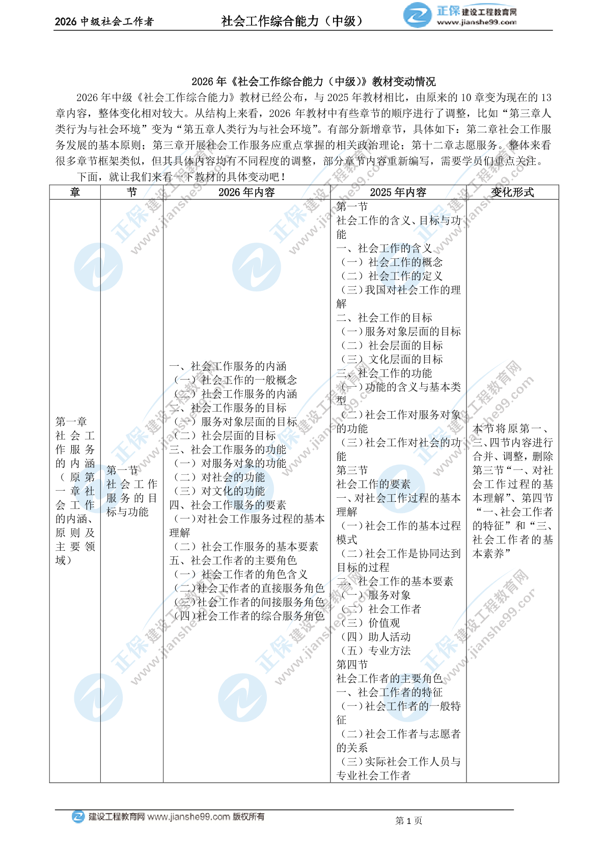 【人大版】2026年《社会工作综合能力(中级)》教材变动情况