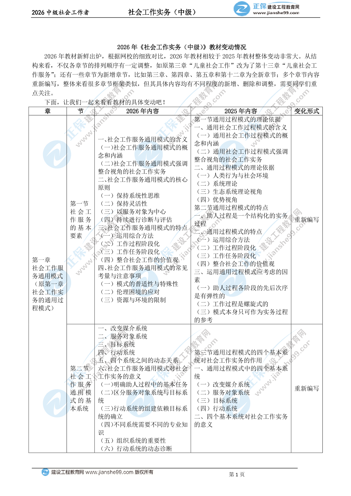 【社会社版】2026年《社会工作综合能力(中级)》教材变动情况