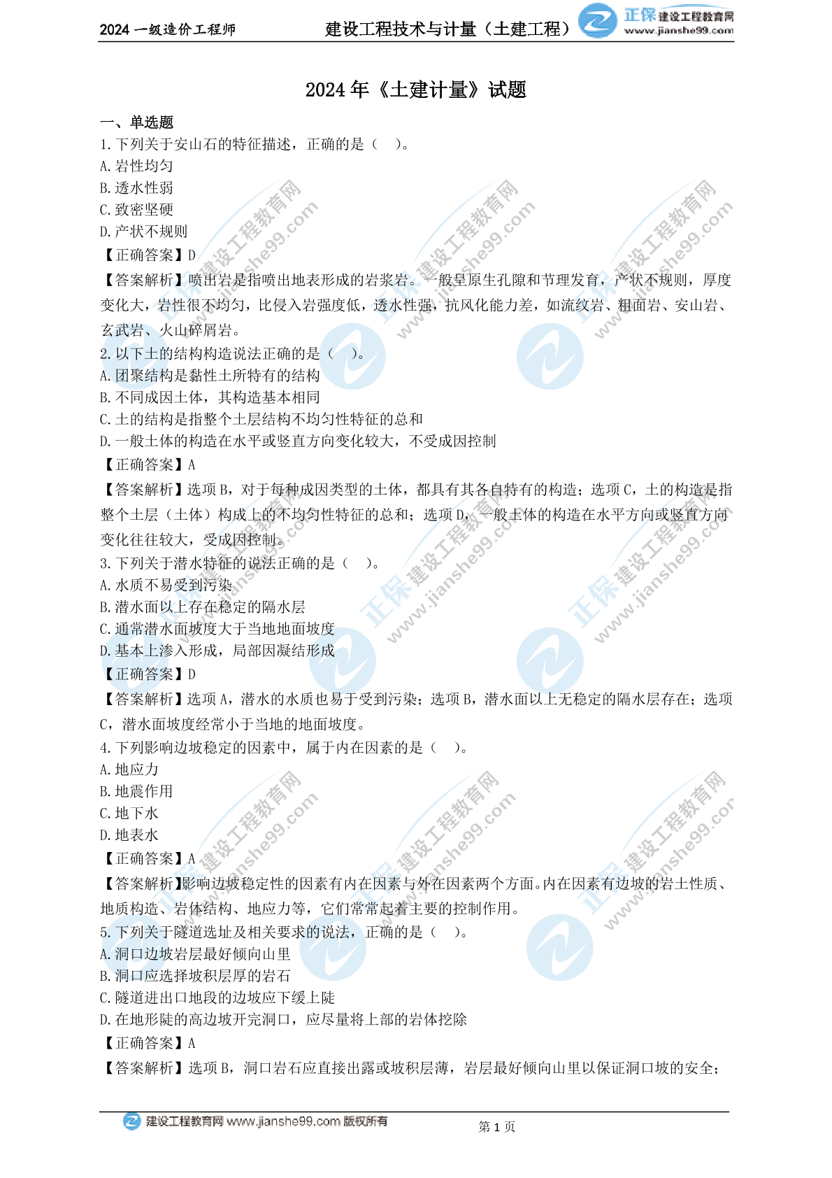 版权说明:本文档由正保建设教育教研团队提供并上传,若内容存在侵权,请联系客服处理!