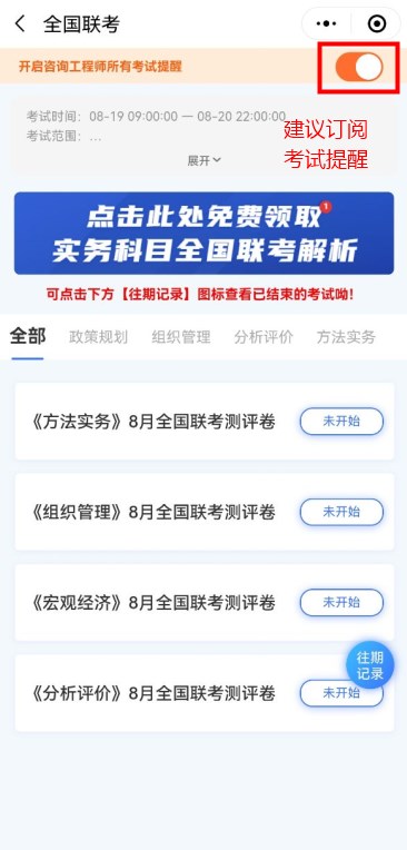 1.全国联考在规定时间内免费进行考试,试卷入口开放后可通过扫码进入,请准时参与;