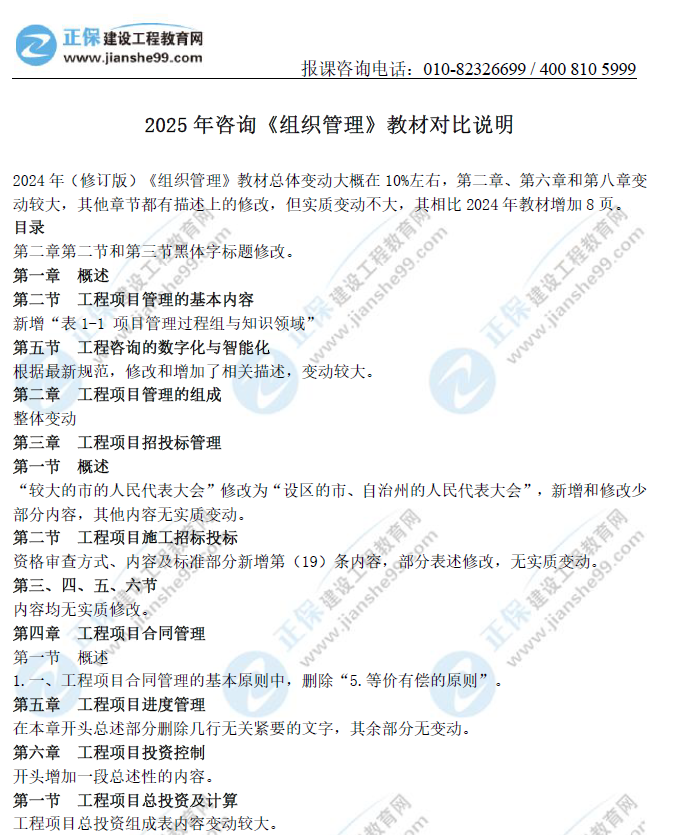 2025年咨询工程师《组织管理》教材变化大吗?