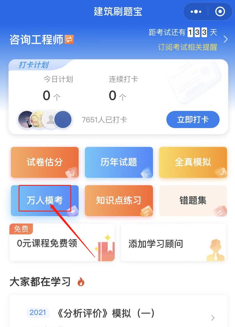 3.点击下方的万人模考;