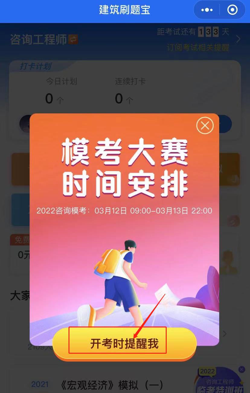 4.点击开考时提醒我,即可成功预约。开始时会通过微信消息提醒大家。