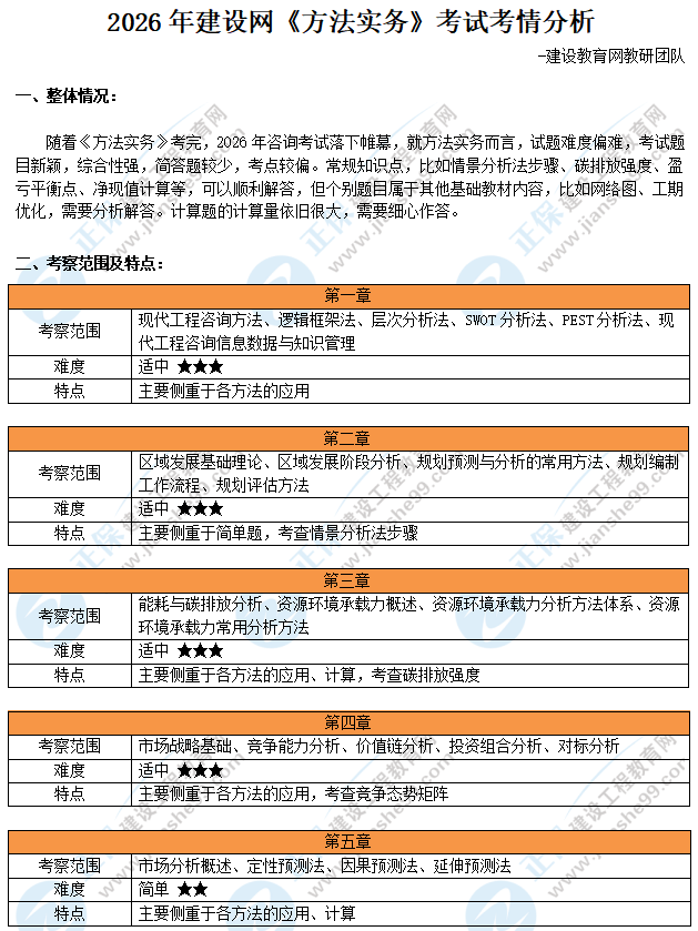 2026年咨询工程师《现代咨询方法与实务》考试已结束,大部分考生都反馈题目较偏,建设工程教育网教研团队整理了分析评价考情分析,一起来看看。