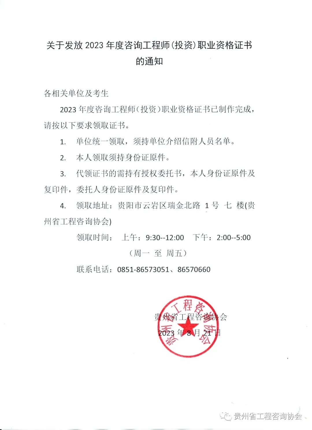 摘要:贵州2023年咨询工程师考试证书已经开始发放,考生需去现场领取2023年咨询工程师证书。具体领取通知如下。