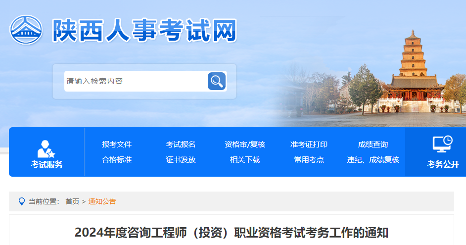 2024年度陕西咨询工程师(投资)职业资格考试考务工作的通知