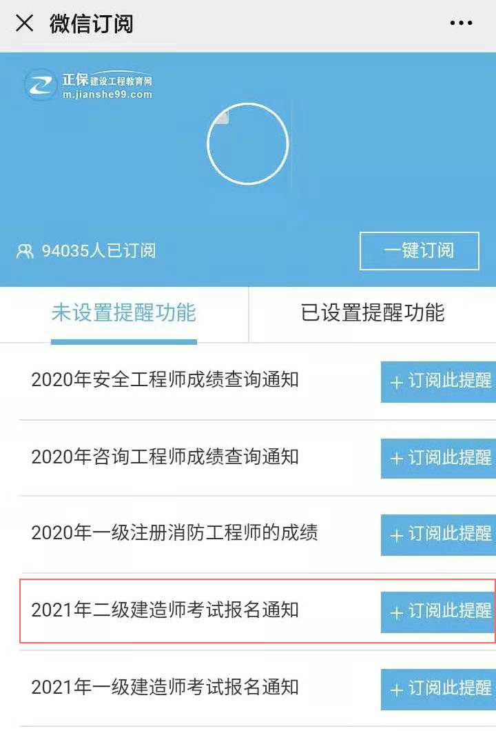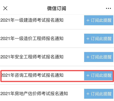 第三步:选择“2021年咨询工程师考试报名通知”-订阅此提醒