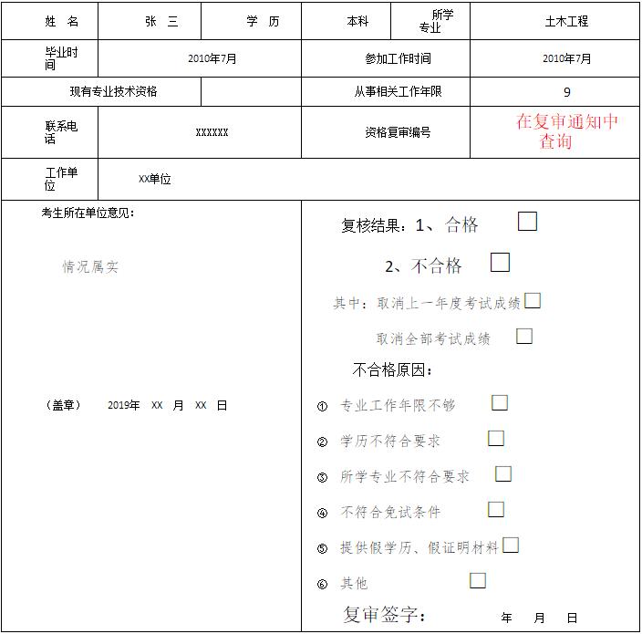 说明: 1、“考生所在单位意见”由考生所在单位签注考生所填内容是否属实的意见并盖章。