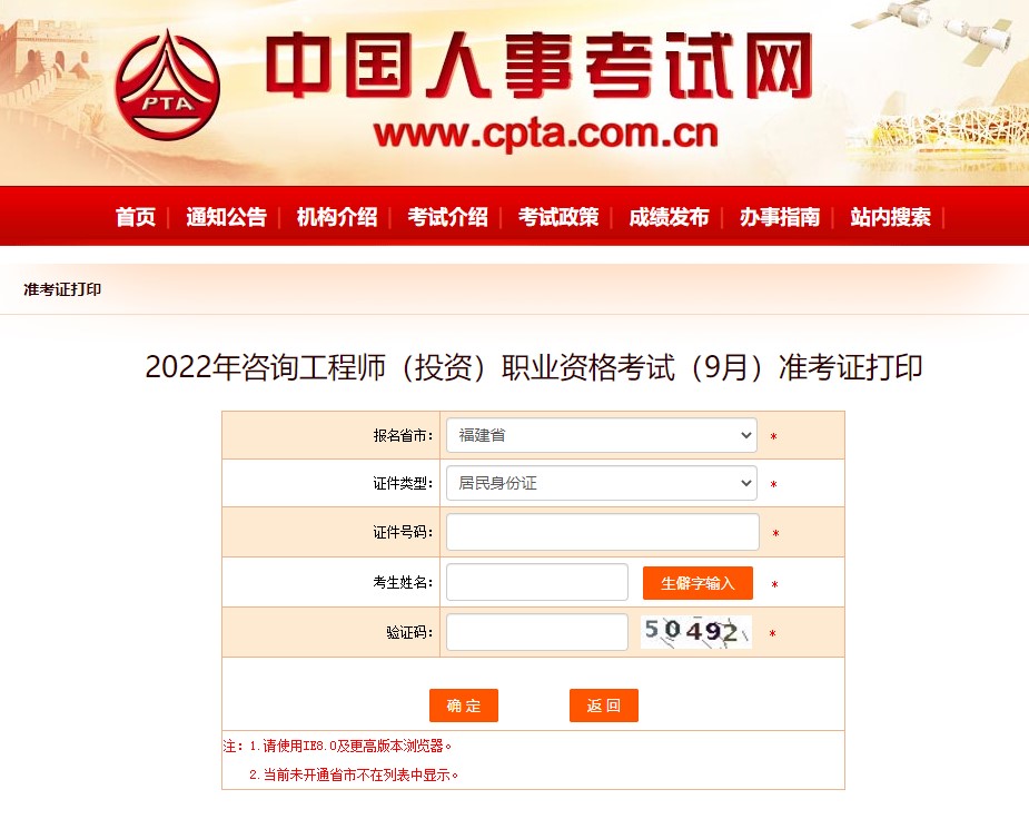 福建省2022年咨询准考证打印入口:中国人事考试网-准考证打印入口