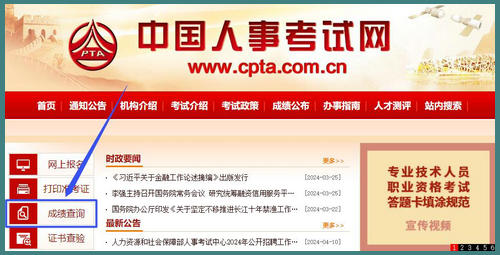 请考生登陆中国人事考试网(www.cpta.com.cn)“成绩查询”栏目进行查询。