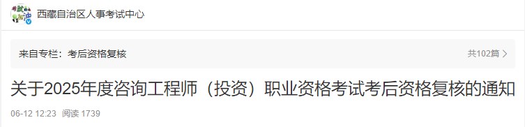 西藏自治区人事考试中心发布关于2025年度咨询工程师(投资)职业资格考试考后资格复核的通知,具体信息如下: