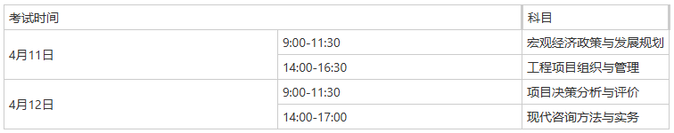 2026年度咨询工程师(投资)职业资格考试时间安排