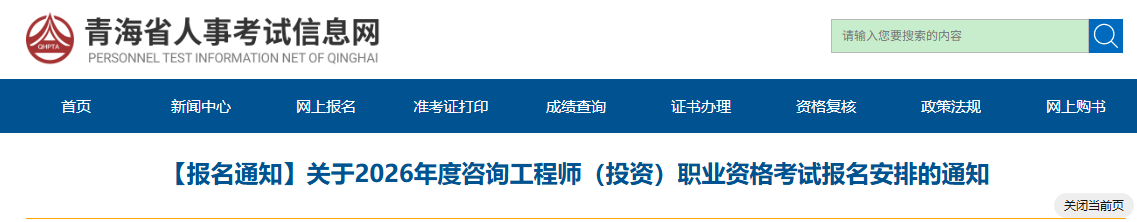 青海省人事考试信息网发布【报名通知】关于2026年度咨询工程师(投资)职业资格考试报名安排的通知,具体信息如下: