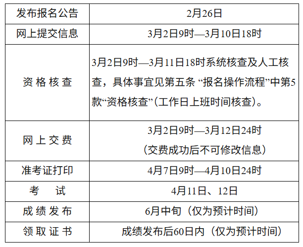 | 准考证打印 | 4月7日9时—4月10日24时 |